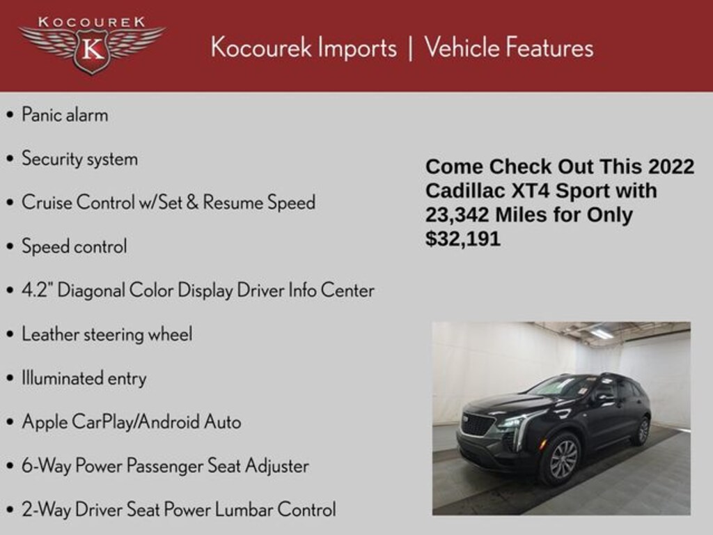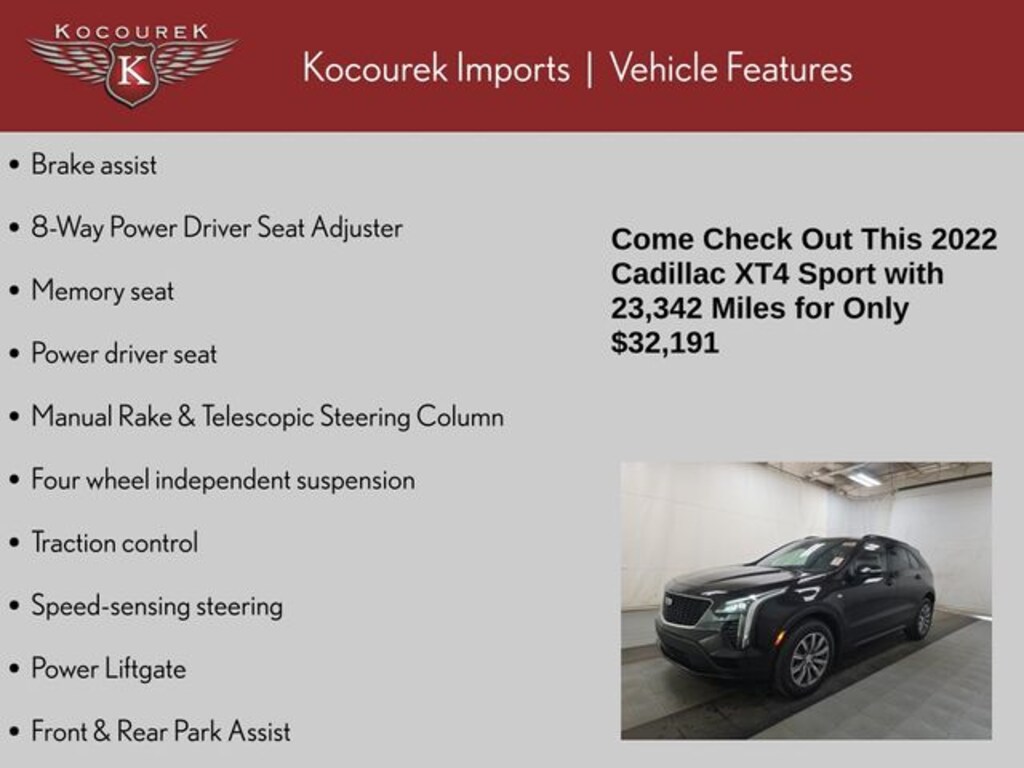 Whether you're embarking on a family road trip or navigating the urban jungle, this 2022 Cadillac XT4 Sport is the perfect companion. Its blend of luxury, performance, and cutting-edge technology make it a standout in the crowded SUV market. Visit our showroom today and experience the exceptional craftsmanship and driving dynamics of this exceptional vehicle.