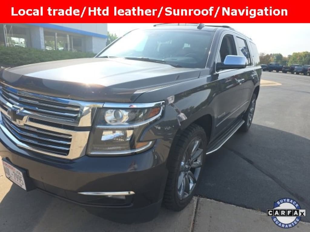 4WD / 4X4 / AWD / Four Wheel Drive, 4WD, Jet Black Leather, 10 Speakers, 3.42 Rear Axle Ratio, 3rd Row 60/40 Power Fold Split-Bench, 3rd row seats: split-bench, 4-Wheel Antilock Disc Brakes w/Brake Assist, 4-Wheel Disc Brakes, 5 12-Volt Auxiliary Power Outlets, 6-Way Power Front Passenger Seat Adjuster, ABS brakes, Adaptive suspension, Adjustable pedals, Air Conditioning, Alloy wheels, AM/FM radio: SiriusXM, Apple CarPlay/Android Auto, Auto High-beam Headlights, Auto-dimming door mirrors, Auto-Dimming Inside Rear-View Mirror, Auto-dimming Rear-View mirror, Automatic temperature control, Black Assist Steps w/Chrome Accent Strip, Bose Centerpoint Premium 10-Speaker Surround Sound, Brake assist, CD player, Color-Keyed Carpeting Floor Covering, Delay-off headlights, Driver Inboard & Front Passenger Airbags, Dual front impact airbags, Dual front side impact airbags, Electronic Cruise Control w/Set & Resume Speed, Electronic Stability Control, Emergency communication system: OnStar Guidance, Enhanced Driver Alert Package (Y86), Enhanced Driver Information Center, Exterior Parking Camera Rear, Floor Console, Fog Lamps, Forward Collision Alert Sensor Indicator, Front & Rear Black Bowtie Emblems (LPO), Front & Rear Parking Assist, Front anti-roll bar, Front Bucket Seats, Front Center Armrest, Front dual zone A/C, Front fog lights, Front Heated Reclining Bucket Seats, Front wheel independent suspension, Fully automatic headlights, Garage door transmitter, Hands Free Power Liftgate, Heated & Vented Driver & Front Passenger Seats, Heated 2nd Row Seats, Heated door mirrors, Heated Leather Wrapped Steering Wheel, High-Intensity Discharge Headlights, Illuminated entry, Integrated Trailer Brake Controller, IntelliBeam Headlamps, Lane Keep Assist, Low Speed Forward Automatic Braking, Low tire pressure warning, Magnetic Ride Control Suspension Package, Max Trailering Package, Memory seat, Memory Settings, Navigation System, NavTraffic, Occupant sensing airbag, OnStar Basic Plan For 5 Years, Outside temperature display, Overhead airbag, Panic alarm, Passenger door bin, Passenger vanity mirror, Passive Entry System, Pedal memory, Perforated Leather-Appointed Seat Trim, Power door mirrors, Power driver seat, Power Liftgate, Power Release 2nd Row Bucket Seats, Power Sunroof, Power Tilt & Telescopic Steering Column, Power windows, Power-Adjustable Accelerator & Brake Pedals, Power-Folding Heated Outside Mirrors, Preferred Equipment Group 1LZ, Push Button Keyless Start, Radio: Chevrolet MyLink w/Nav/AM/FM Stereo, Rain sensing wipers, Rear air conditioning, Rear anti-roll bar, Rear Cross-Traffic Alert, Rear Seat Blu-Ray/DVD Entertainment System, Rear window defroster, Rear window wiper, Remote Keyless Entry, Remote Vehicle Start, Roof-Mounted Luggage Rack Side Rails, Security system, Side Blind Zone Alert w/Lane Change Alert, Single-Slot CD/MP3 Player, Speed-sensing steering, Split folding rear seat, Steering wheel memory, Steering wheel mounted audio controls, Sun, Entertainment & Destinations Package, Telescoping steering wheel, Traction control, Turn signal indicator mirrors, Universal Home Remote, Variably intermittent wipers, Ventilated front seats, Wheels: 22 Premium Painted w/Chrome Inserts, Wireless Charging.Recent Arrival!Awards:* JD Power Automotive Performance, Execution and Layout (APEAL) Study, Dependability Study * 2017 KBB.com Best Buy Awards * 2017 KBB.com 12 Best Family Cars * 2017 KBB.com 5-Year Cost to Own Awards * 2017 KBB.com 10 Most Awarded Brands Please call one of our knowledgeable Sales Consultants with any questions you might have, or to verify listed options. Serving guests from Stevens Point, Plover, Wausau, Marathon, Portage, Langlade, Oneida, Taylor, Vilias, Wood, Clark, Lincoln, Waupaca or near me! 2017 Chevrolet Tahoe Premier