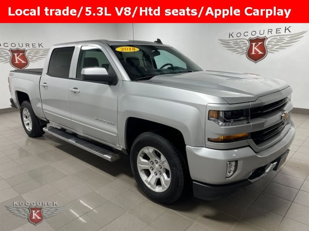 4WD / 4X4 / AWD / Four Wheel Drive, 6-Speed Automatic Electronic with Overdrive, 4WD, Black Cloth, 10-Way Power Driver's Seat Adjuster, 110-Volt AC Power Outlet, 4-Wheel Disc Brakes, 4.2 Diagonal Color Display Driver Info Center, 40/20/40 Front Split Bench Seat, 6 Speaker Audio System, ABS brakes, Air Conditioning, All Star Edition, Alloy wheels, AM/FM radio: SiriusXM, Auxiliary External Transmission Oil Cooler, Bluetooth® For Phone, Brake assist, CD player, Chevrolet Connected Access, Chevrolet w/4G LTE, Compass, Delay-off headlights, Driver & Front Passenger Illuminated Vanity Mirrors, Dual front impact airbags, Dual front side impact airbags, Dual-Zone Automatic Climate Control, Electric Rear-Window Defogger, Electronic Stability Control, Exterior Parking Camera Rear, EZ Lift & Lower Tailgate, Front anti-roll bar, Front wheel independent suspension, Fully automatic headlights, HD Radio, Heated door mirrors, Heated Driver & Front Passenger Seats, Heavy-Duty Rear Locking Differential, High-Intensity Discharge Headlights, Illuminated entry, Leather Wrapped Steering Wheel w/Cruise Controls, Low tire pressure warning, Manual Tilt Wheel Steering Column, Manual Tilt/Telescoping Steering Column, Occupant sensing airbag, OnStar & Chevrolet Connected Services Capable, Outside temperature display, Overhead airbag, Overhead console, Panic alarm, Power door mirrors, Power windows, Power Windows w/Driver Express Up, Premium audio system: Chevrolet MyLink, Radio data system, Radio: AM/FM 8 Diagonal Color Touch Screen, Rear 60/40 Folding Bench Seat (Folds Up), Rear Chrome Bumper, Rear step bumper, Rear Wheelhouse Liners, Remote Keyless Entry, Remote Locking Tailgate, Remote Vehicle Starter System, Single Slot CD/MP3 Player, SiriusXM Satellite Radio, Speed control, Speed-sensing steering, Split folding rear seat, Steering Wheel Audio Controls, Steering wheel mounted audio controls, Tachometer, Theft Deterrent System (Unauthorized Entry), Thin Profile LED Fog Lamps, Traction control, Trailering Package, Variably intermittent wipers.2018 Chevrolet Silverado 1500 LT LT2 Priced below KBB Fair Purchase Price!Awards:* 2018 KBB.com 10 Most Awarded Brands Proudly serving guests in marathon, portage, langlade, oneida, taylor, vilias, wood, clark, lincoln, and waupaca counties. Please call one of our knowledgeable Sales Consultants with any questions you might have, or to verify listed options. Serving guests from Stevens Point, Plover, Wausau, Marathon, Portage, Langlade, Oneida, Taylor, Vilias, Wood, Clark, Lincoln, Waupaca or near me!